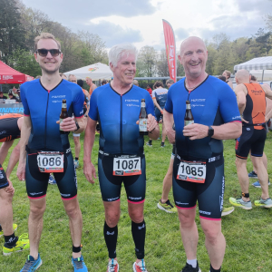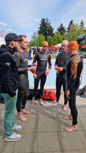 In Arnhem ging daarna het triathlon seizoen van start met de triathlon team competitie. Hierbij zijn Rimko Winter, Jan Meier, Marcel Heuver en Edwin Bijlsma van start gegaan. Zij hebben de 500 m zwemmen, 20 km fietsen en 5 km lopen in het prachtige glooiende landschap van Arnhem in een tijd van 01:11:01 volbracht. Een hele mooie prestatie en een mooi begin van het seizoen, en vooral een hele leerzame ervaring waar goed op uit te bouwen valt dit seizoen. Zo heeft Marcel (gelukkig nog op tijd) geleerd dat je de badmuts af mag doen voor het fietsen, iets wat hij schijnbaar vergeten was ;)