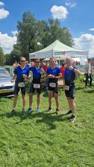Het triathlon team (derde divisie) ging van start in Voorst, Sprint afstand(750 meter zwemmen, 20km fietsen en 5km hardlopen) Mooie weersomstandigheden, leuke sfeer en mooie omgeving. Rimko Winters, Edwin Bijlsma, Marcel Heuver en Johan Boom deden hier aan mee.