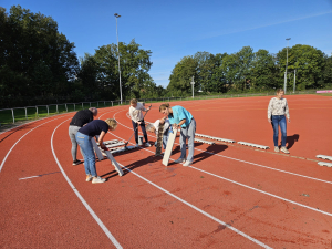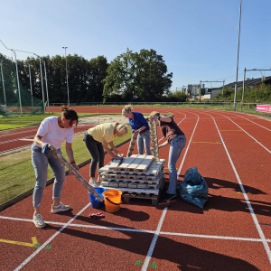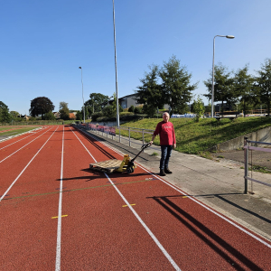 Vanochtend stond weer een team aan vrijwilligers klaar voor het onderhoud van de baan. Na het groot onderhoud was het aan de Spurt leden om de gootdeksels rond de baan schoon te maken en terug te plaatsen. Dat bleek een flinke klus.