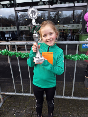 Ze wonnen allebei de eerste prijs. Luna op de 500 meter en Yara op de 1 km 8/9 jaar. Een topprestatie voor de dames die allebei met een mooie beker naar huis konden gaan